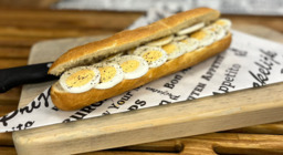 Broodje naar keuze belegd met romige eiersalade en ijsbergsla.