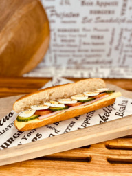 Broodje naar keuze belegd met gegrilde achterham, jong belegen kaas, ei, tomaat, komkommer, remouladesaus, Zout & Peper